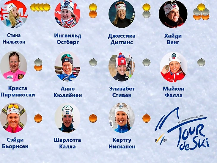 Этот сезон Тур де Ски порадовал болельщиков женских лыжных гонок борьбой между представителям разных стран. С 2013-2014 года места в тройке генерального зачета стабильно занимали норвежские лыжницы. В этом сезоне призерами соревнований стали финка Криста Пярмякоски и Стина Нильссон. Интересен и тот факт, что на 5 этапе многодневки норвежские лыжницы не попали на пьедестал почета впервые с 2012 года.