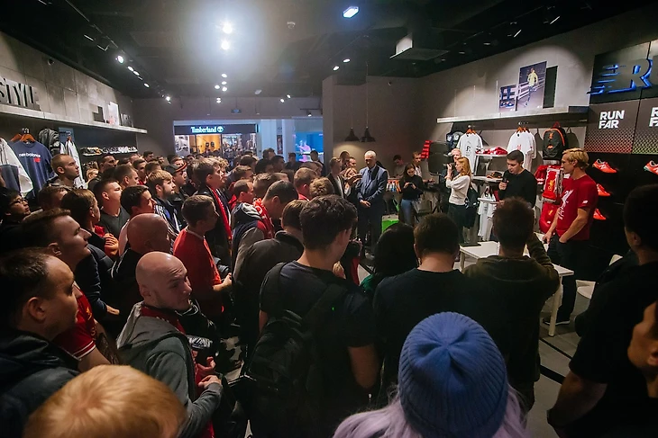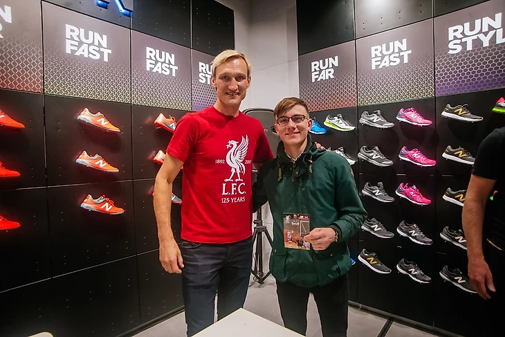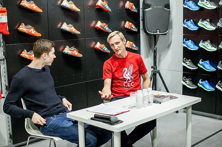 Начну я с того, что для меня как для болельщика "Ливерпуля" эта встреча останется в памяти навсегда. Живя в своей родной стране, у меня не было возможности посещать такие встречи, потому что их там попросту никто не устраивал. Переехав на учёбу в Москву, я решил воспользоваться такой возможностью. О встрече мне сообщил друг, который тоже является болельщиком "Ливерпуля". Ну и на следующий день я решил отправиться на это мероприятие. Найдя магазин New Balance, я был удивлён насколько мало людей собралось там, но прошло 10-15 минут и народ начал подтягиваться. Ещё через столько же появился сам Сами Хююпя. Наши болельщики встретили его аплодисментами и финн отправился переодеваться в красную футболку "Ливерпуля". Подождав немного, нас впустили в магазин и встреча началась. Филипп Кудрявцев, исполняв роль переводчика, кратко рассказал нам о заслугах Сами, о которых мы конечно же уже знали.