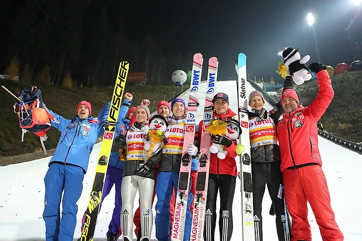 Норвежская четвёрка, состоящая из Йоханна Андре Форфанга, Аннеша Фаннемеля, Даниэля-Андре Танде и Роберта Йоханссона, первой поднялась на верхнюю ступень пьедестала командных соревнований в этом сезоне.