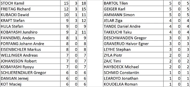 hakkinen (Неман): KRAFT Stefan, STOCH Kamil, TAKEUCHI Taku, SCHLIERENZAUER Gregor , KOBAYASHI Junshiro x2