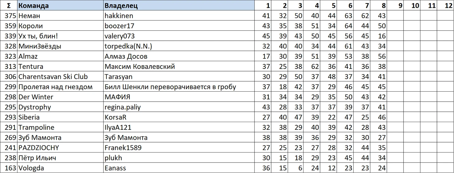 Максим Ковалевский (Tentura): FREITAG Richard, STOCH Kamil, DESCHWANDEN Gregor, DAMJAN Jernej, HULA Stefan x2