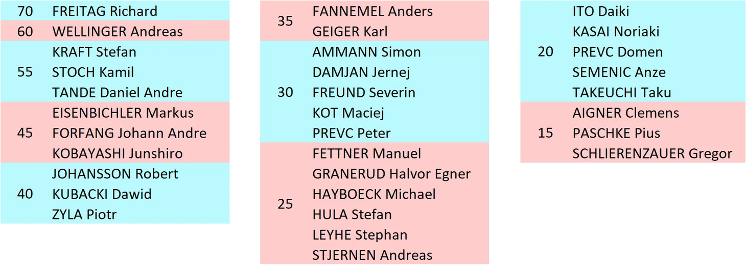 hakkinen (Неман): KRAFT Stefan, STOCH Kamil, TAKEUCHI Taku, SCHLIERENZAUER Gregor, KOBAYASHI Junshiro x2