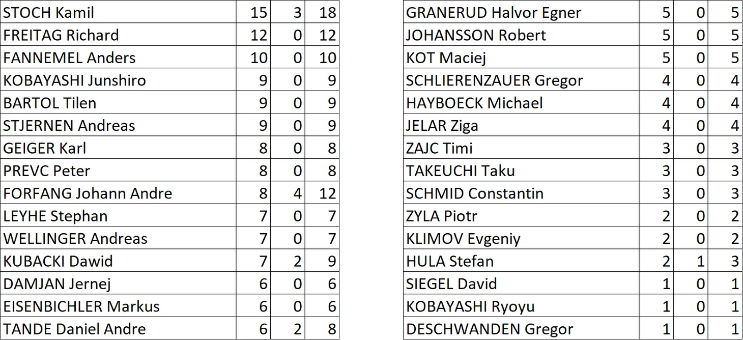 Камил Стох одерживает вторую победу подряд и укрепляет своё лидерство в зачёте турне! А мы тем временем подводим итоги и делаем замены на первый австрийский этап!