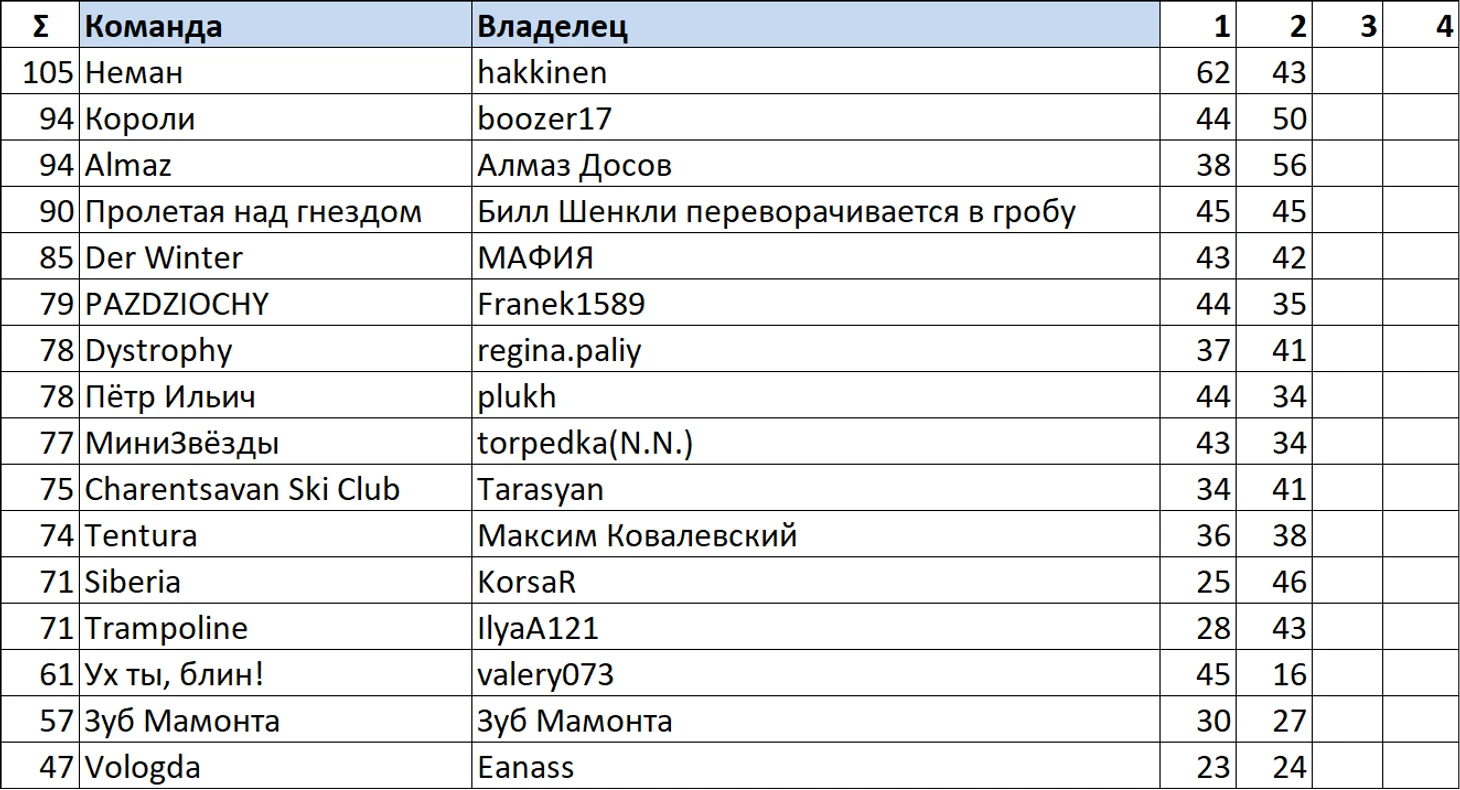 Бонусы за квалификацию: Форфанг - 3 очка, Кубацки - 2 очка, Хула - 1 очко