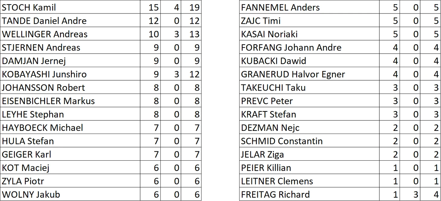 Камиль Стох продолжает свою победную серию и в зачёте турне более чем на 60 баллов опережает идущего на втором месте Андреаса Веллингера! Мы также желаем скорейшего выздоровления Рихарду Фрайтагу!