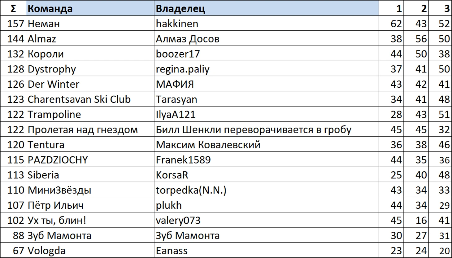 valery073 (Ух ты, блин!): STOCH Kamil, FREITAG Richard, KOBAYASHI Ryoyu, BARTOL Tilen, STJERNEN Andreas x2