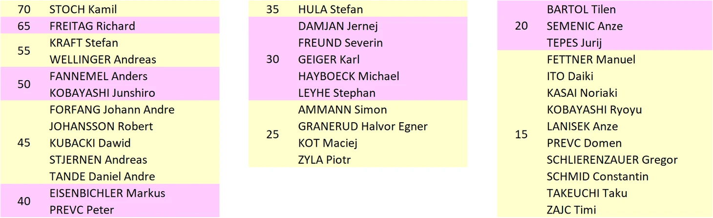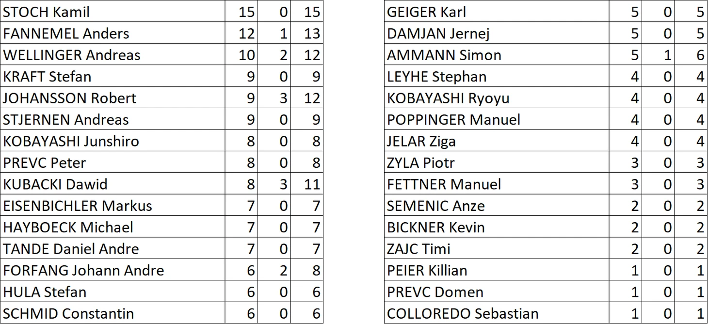 boozer17 (Короли): STOCH Kamil, BARTOL Tilen, TANDE Daniel Andre, KOBAYASHI Junshiro, STJERNEN Andreas x2