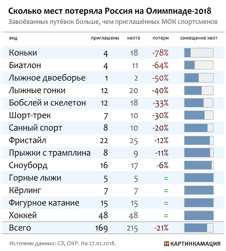 Сколько мест потеряла Россия на Олимпиаде-2018