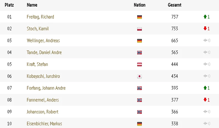 Ветер внес свои корректировки в результаты, и он оказался неблагосклонен к национальному герою Польши, который начинал свою карьеру именно в Закопане, — Камилу Стоху. Непроход во второй раунд стал ударом для болельщиков, которые ждали его пятой победы на Велке Крокев, которая позволила бы ему сравниться с Грегором Шлиренцауэром, но в этом сезоне этого не случилось. «Думаю, это была моя ошибка, но в этих условиях она стоила дорого» — резюме Стоха. Странная траектория полета на большом трамплине в Закопане буквально притянула поляка к отметке 108,5 метров, отняв у него желтую майку лидера общего зачета Кубка мира. Противостояние Стоха с Фрайтагом продолжается.