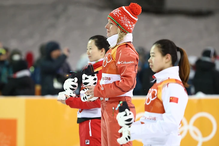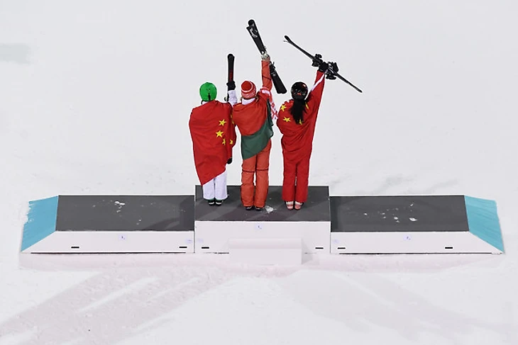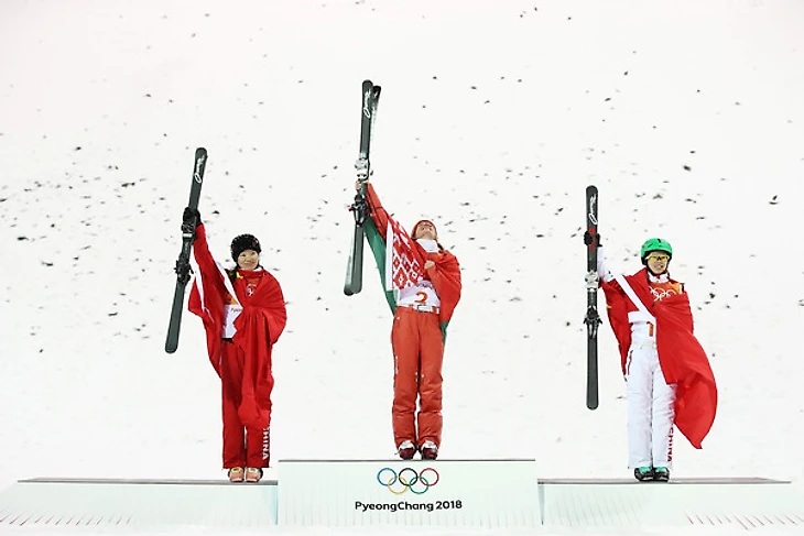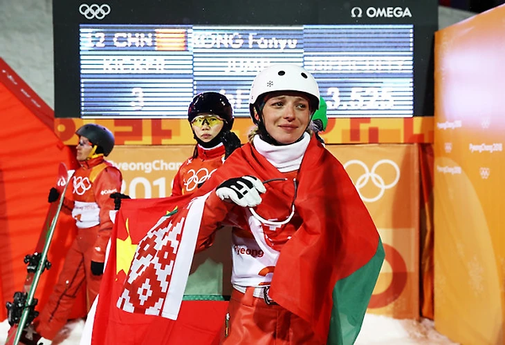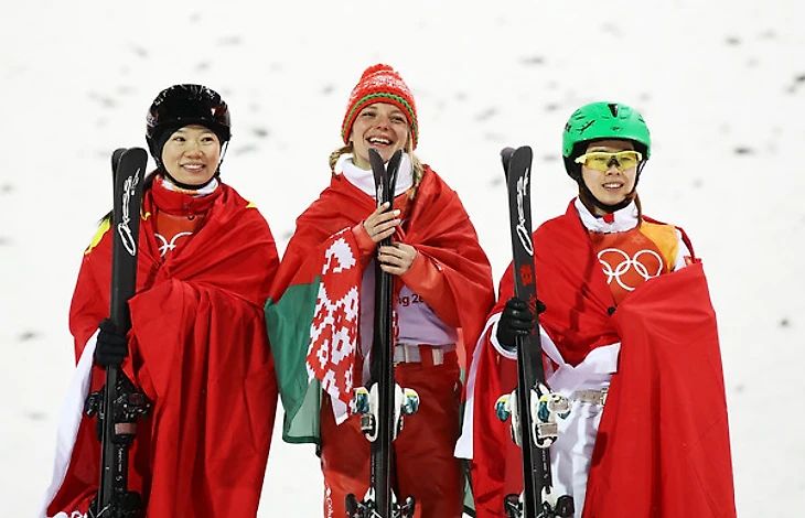 Первой из китайанок свою попытку выполняла Ксинь Чжан. Выполнила она свою попытку хорошо и встала на ноги, однако, коэффициент прыжка был несколько меньше, чем у Гуськовой и Чжан не сумела обойти беларуску. Кун Фаньюй и вовсе при приземлении приложилась спиной к снегу, однако, дальше сохранила равновесии и сумела устоять на лыжах. "Благодаря" падению других спортсменок китаянка сумела взобраться на пьедестал и обойти Аллу Цупер, однако, обойти Анну Гуськову с таким прыжком Фаньюй было не суждено. В итоге, первая медаль и сразу золотая на Олимпийских Играх в Корее у сборной Беларуси!