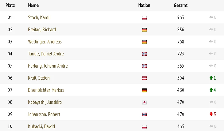 Перед уходом на олимпийскую паузу в общем зачете Кубка мира хрупкая чаша преимущества качнулась в сторону Камила Стоха. Поэтому для Рихарда Фрайтага было важно после не самого удачного выступления в Пхенчхане в личных стартах включиться в погоню за поляком.