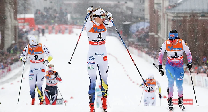 Особенность Драммена - городские условия и убийственный подъем, который дает шанс дистанционщикам на что-то претендовать. Криста Пярмякоски (справа), выигравяшая квалификацию и занявшая второе место в финале вслед за Стиной тому подтверждение. Наталья Непряева не участвовала. Юлия Белорукова была только 22-ой.