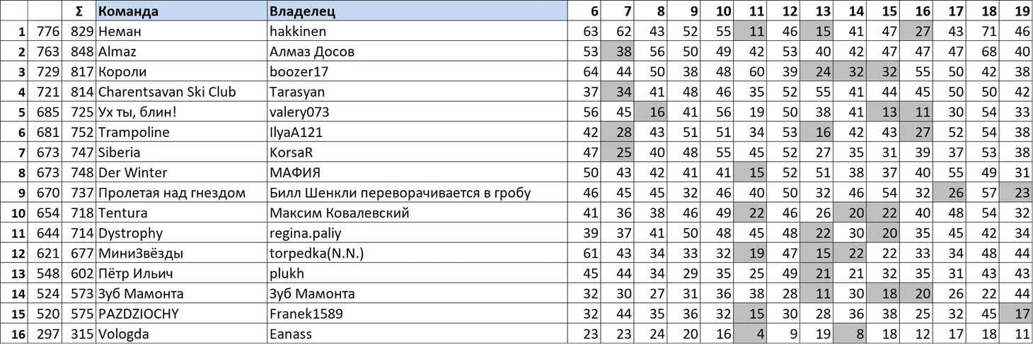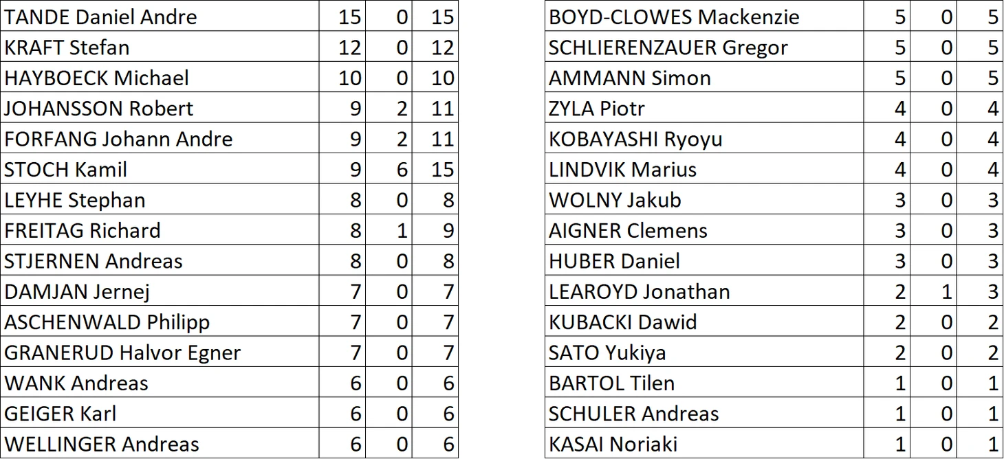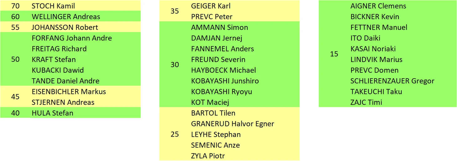 Бонусы за квалификацию: Стох - 3 очка, Йохансон - 2 очка, Фрайтаг - 1 очко
