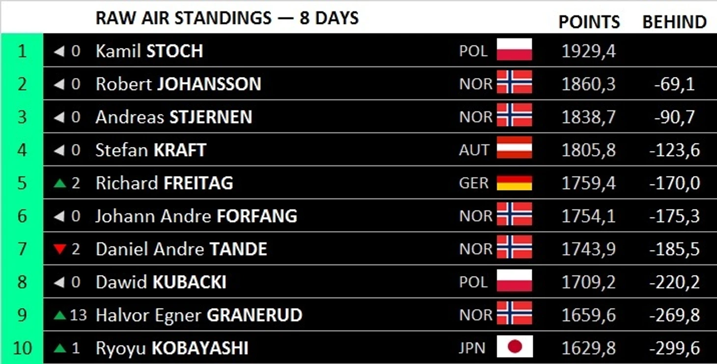 Общий зачёт Raw Air без учёта командных соревнований и квалификаций