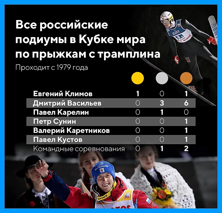 В истории российских прыжков были призовые места на Кубке мира и даже лидерство после первой попытки на Олимпиаде – Дмитрий Васильев шел первым в Турине-2006, но второй прыжок опустил его на 10-е место.