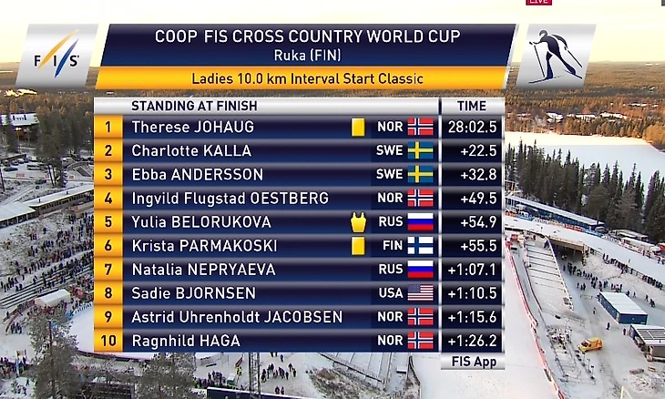 По горячим следам женской 10 км классической гонки с раздельным стартом в Руке (Финляндия) (25.11.2018)