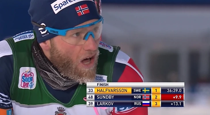 Многие ожидали увидеть борьбу между Клэбо и Большуновым, но лучшим норвежцем неожиданно стал Эмиль Иверсен, проснувшийся после 2,5 лет анабиоза. Калле Халварссон провёл акцентированно сильную концовку и взобрался на третье место, оставив Мартина Йонсруда Сундбю только с деревянной медалью.