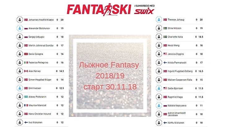 Fantasy турнир по лыжным гонкам стартует 30 ноября 2018
