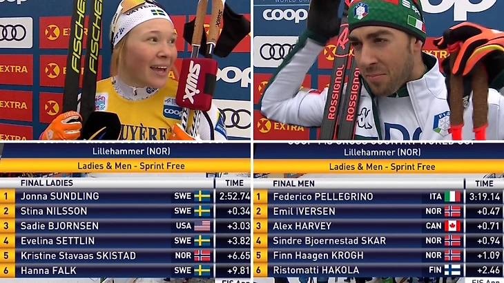 Победитель: Юнна Сундлинг. Серебряный призёр последнего спринта свободным ходом в Фалуне (16.03.2018) завоевала своё первое золото. Юнна не просто завоевала, а сделала это красиво, накатив на финише не кого-нибудь, а саму Стину Нильссон, не ожидавшую от своей более молодой соотечественницы такой прыти. Стина банально недооценила соперницу. В следующий раз её тактика будет более консервативной.