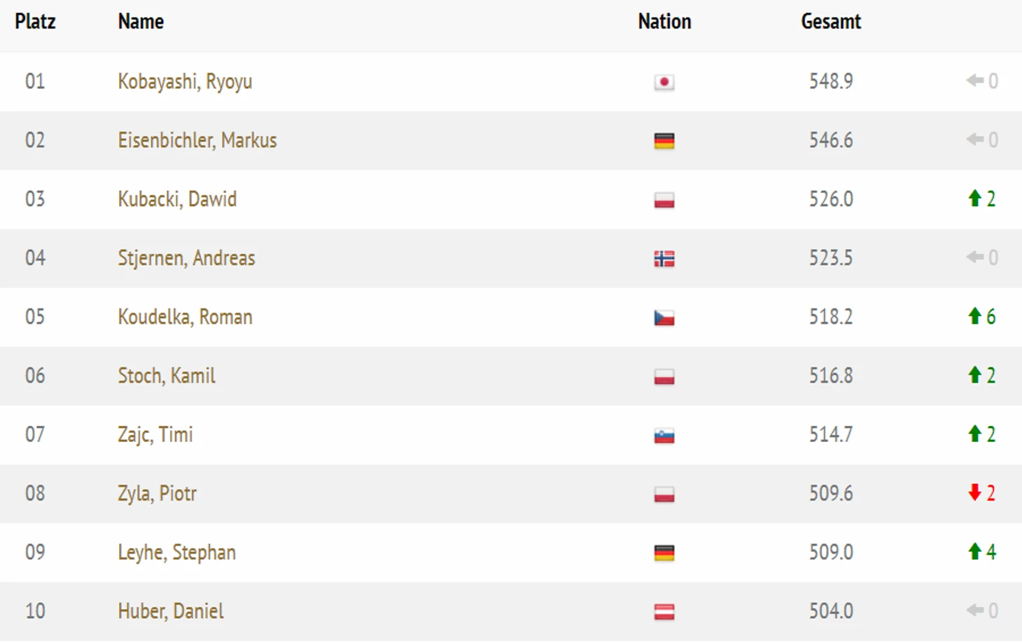2,3 очка. Столько отделяет лидера Турне четырёх трамплинов Рюёю Кобаяши от идущего на втором месте Маркуса Айзенбихлера. Круг главных действующих лиц очерчен и зафиксирован: идущий третьим Давид Кубацки проигрывает уже больше двадцати очков. В этом году нас ждёт дуэль.