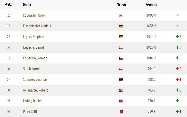 Но с другой стороны, такое доминирование показывает, что уровень конкуренции в этом году не слишком высок. Бой в течение Турне мог дать лишь Маркус Айзенбихлер, но и тот трижды оставался буквально на расстоянии половины шага от того, чтобы перехватить первую строчку. Остальные и вовсе остались далеко позади – прошлогодний триумфатор Камил Стох явно не в форме и пытается подвести себя к чемпионату мира в Зеефельде, пожертвовав ранними стадиями сезона, норвежцы притянули к себе тридцать три несчастья, про австрийцев и говорить нечего, а немцы довольствуются обидной формулой «хороши, но недостаточно хороши».
