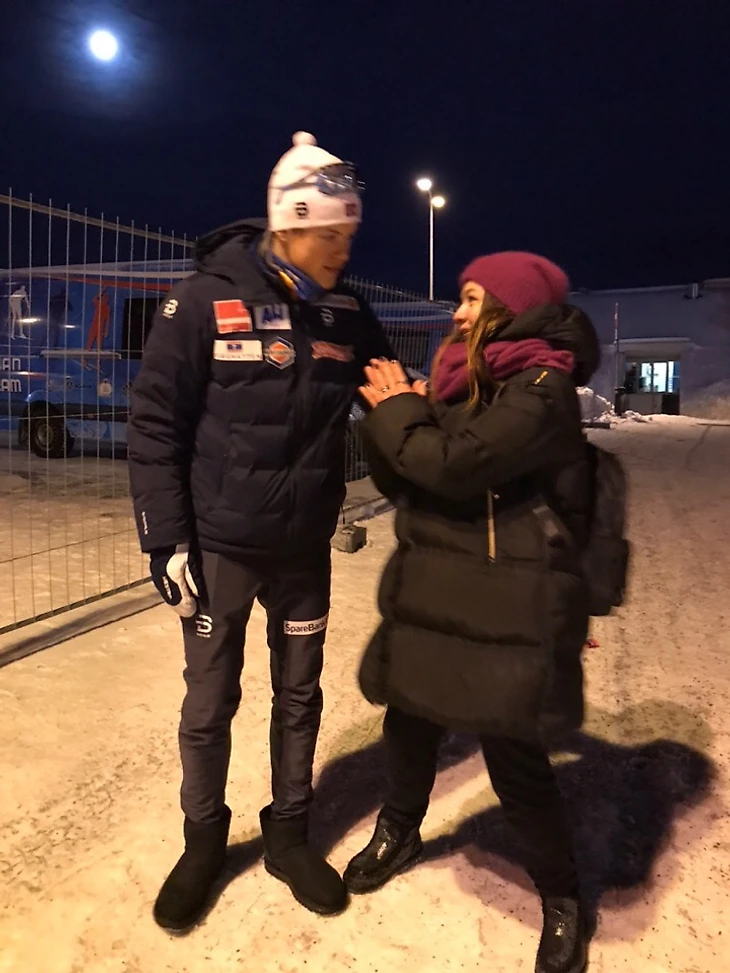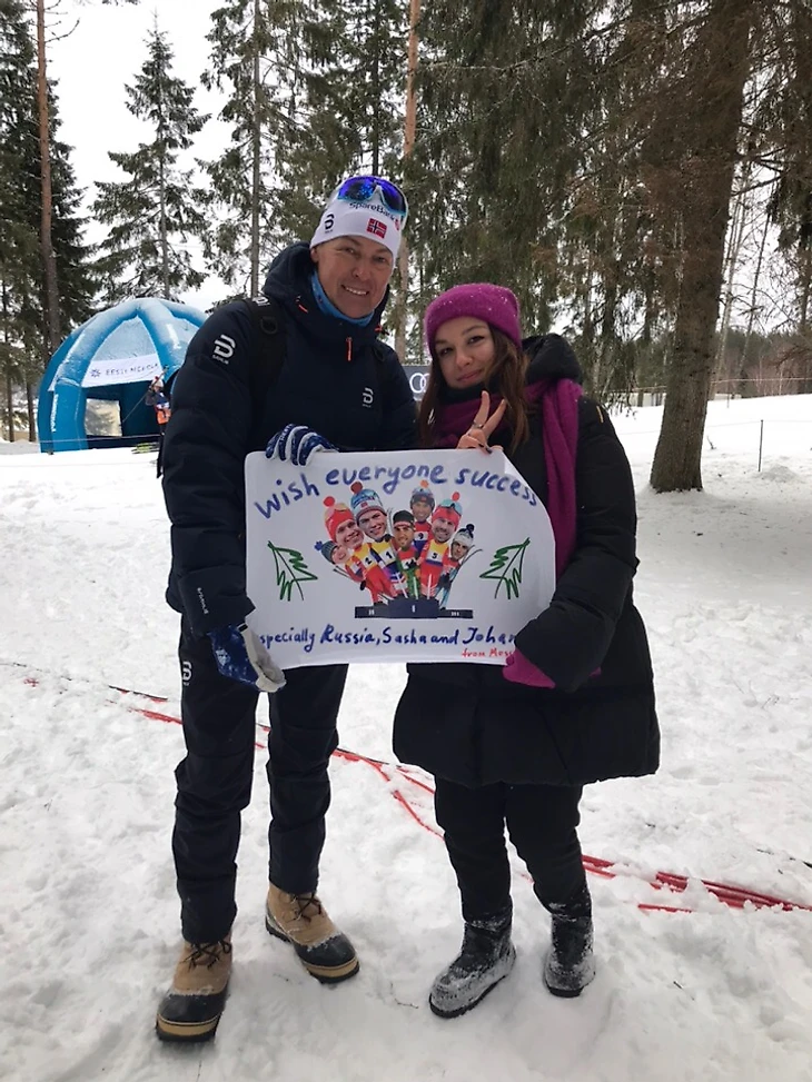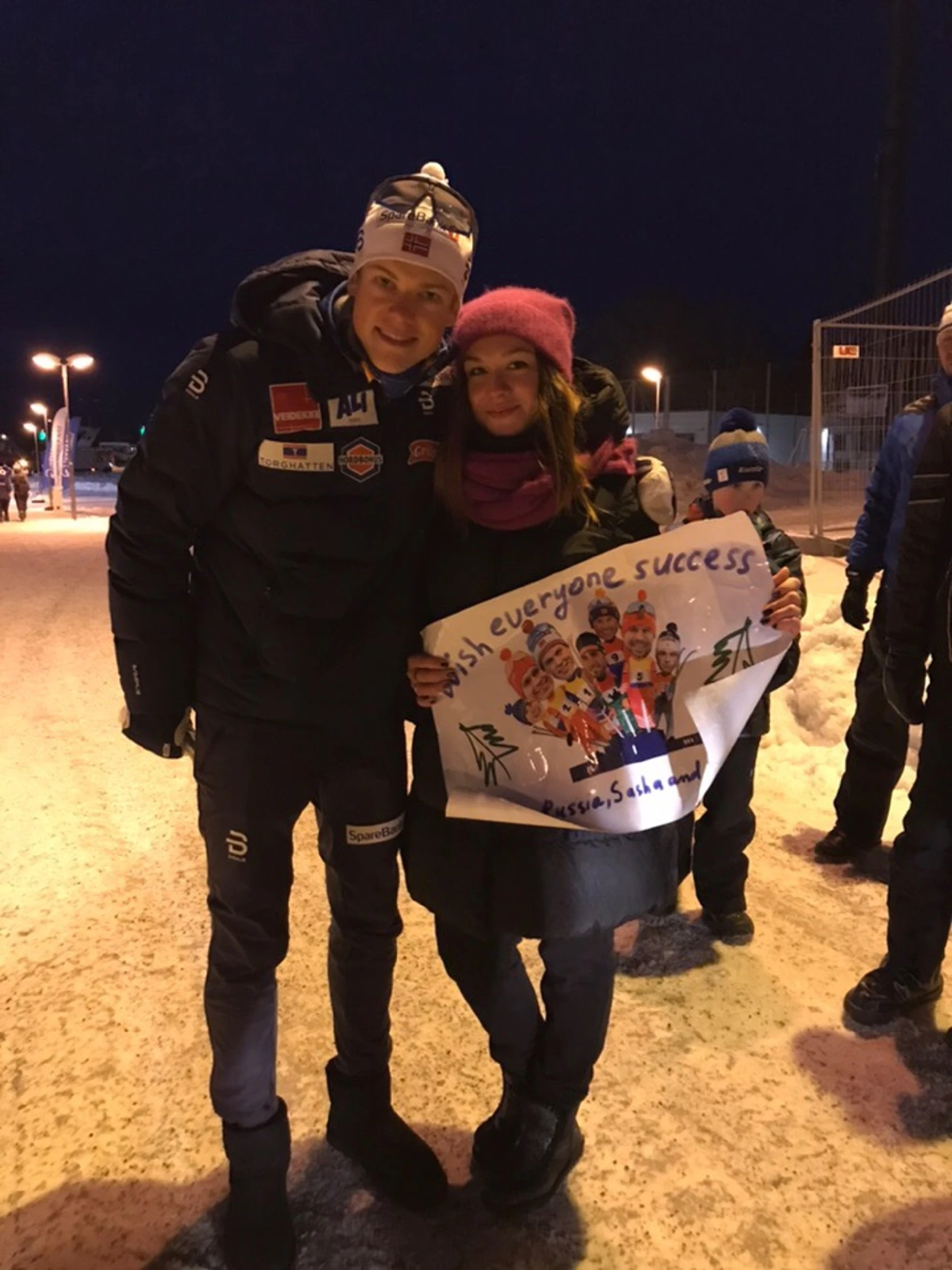 Я решила еще в Москве, что Йоху найти будет непросто после гонки для фото, но если я сфоткаюсь с папой, то буду довольна. Папа вроде как и менеджер Йоханнеса, и вообще начальник, я так поняла теперь))) Я практически уверена, что Йоханнес Клэбо это продукт совместных трудов дедушки и папы. Папа все время ходит неподалеку, иду к папе, делам фото, папа сам предлагает помочь подержать плакат, папа супер вообще.