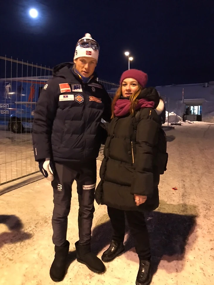 В перерыве между гонками гуляли там-сям, видели и сделала селфи с Маркусом, на второй день Маркус был в отличном настроение, все время ходил и улыбался), сделала фото с Ингвильд (она такая милая!), серьезным Сергеем))) Я дико стеснялась к нему подходить, мама буквально заставила со словами «ты что, каждый день на этапы ездишь!»). И правда!