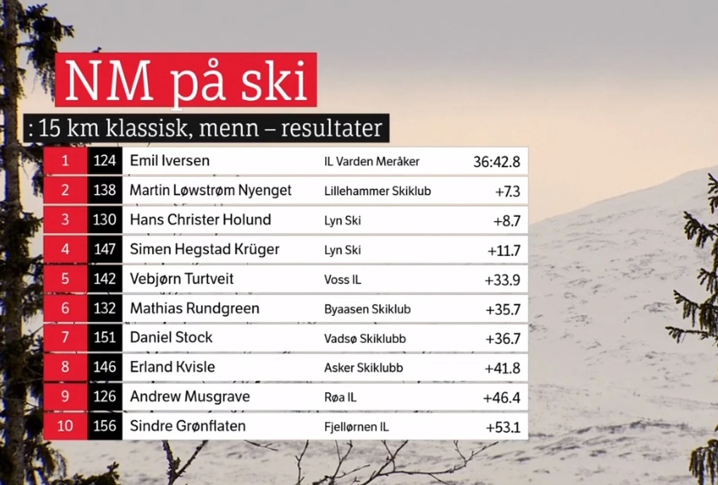 Мартин Левстрем Ниенге был первым среди проигравших с отставанием в +7,3 секунды от Эмиля. Ханс Холунн, над которым все смеялись 4 дня назад уступил +8,7 секунды.