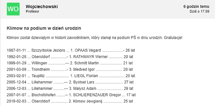 Подобранная польскими коллегами статистика подиумов в день рождения