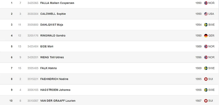 Нельзя не отметить и первый номер квалификации - Эву Уревц, выигрывшую квалификацию в одну калитку, привезя ближайшей Файндрих больше 4 секунд. В итоге молодая словенка финишировала бесславно, завершив этап только 13-ой.