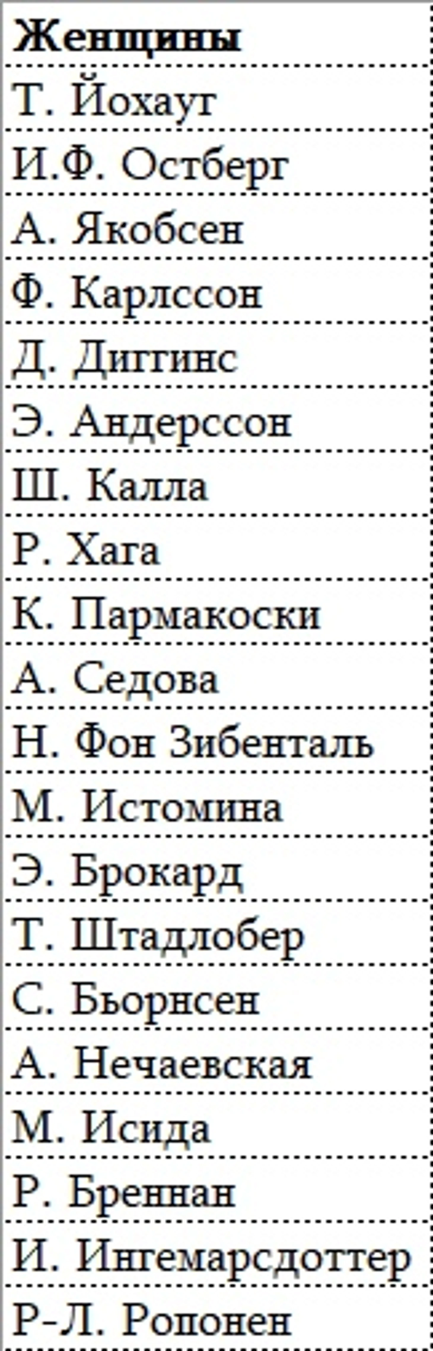 Старт-листы по женщинам