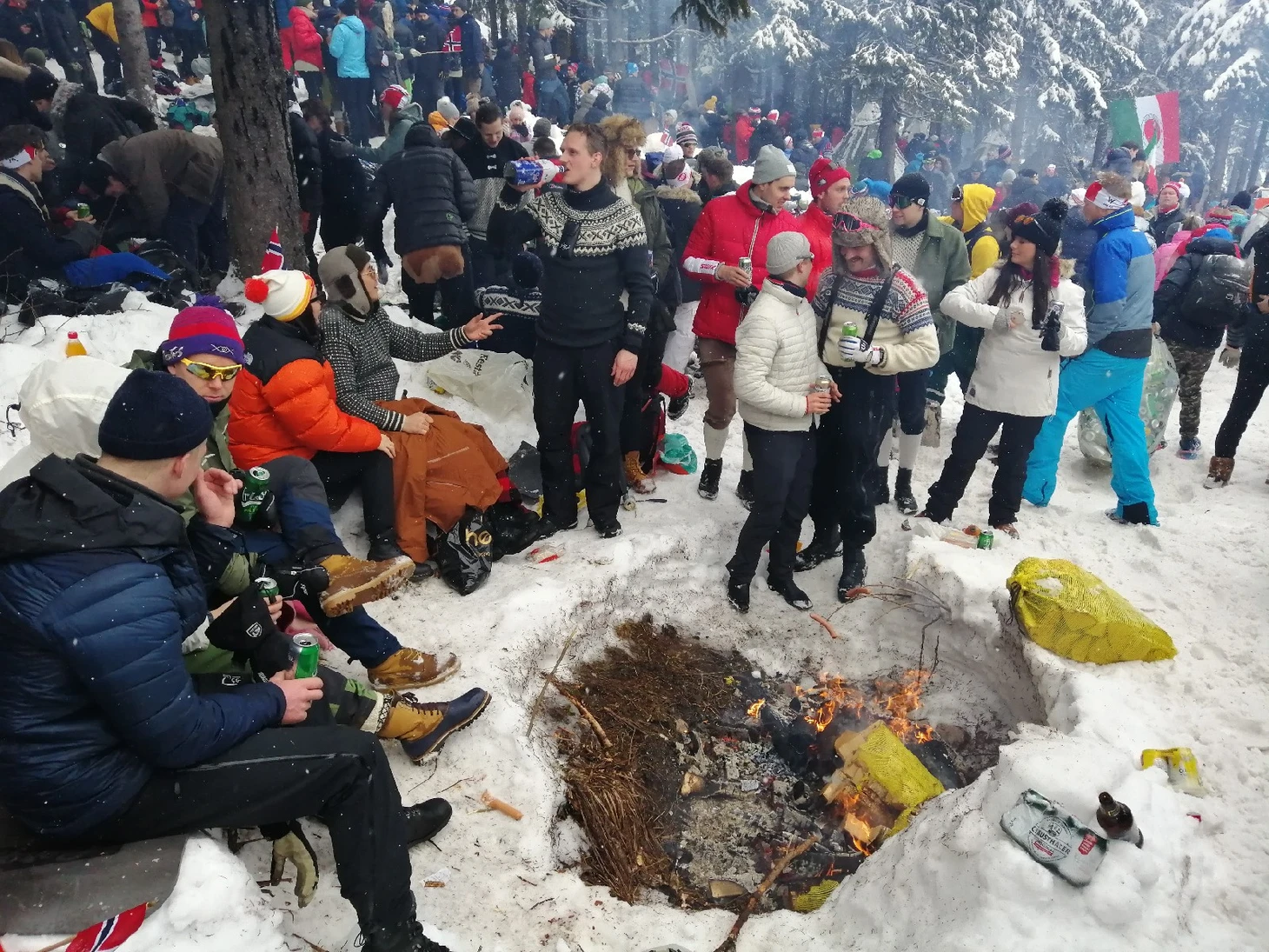 Особенное зрелище - соревнования в Холменколлене. Самые яркие впечатления получаешь, находясь на участках вдоль трассы. Люди приезжали за несколько дней до старта Holmenkollen Ski Festival и устанавливали там палатки. Во время гонки там было очень атмосферно. Играла музыка из болельщицких колонкок, люди грелись у костров и веселились.
