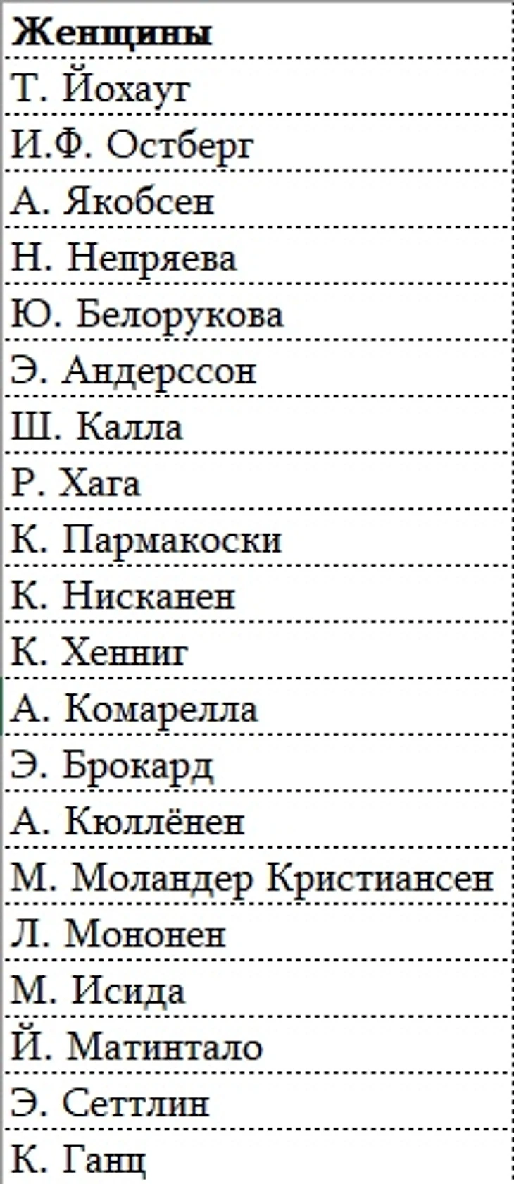 Старт-листы по женщинам