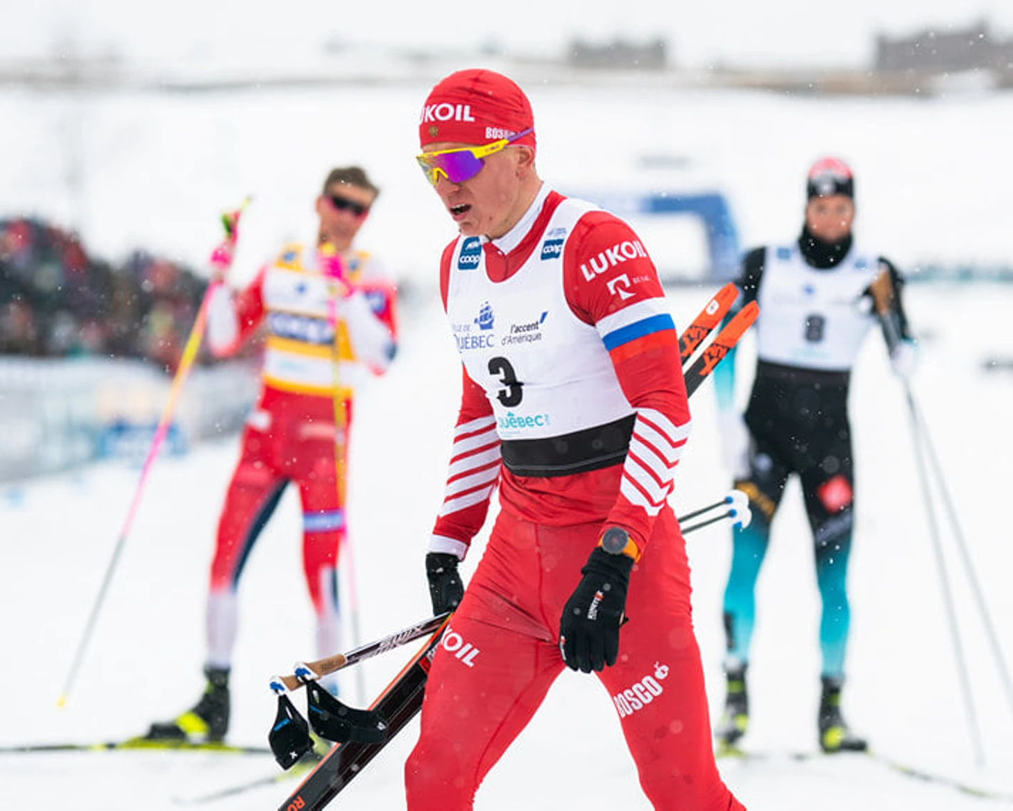Александр Большунов не справился с Йоханнесом Клэбо в классическом масс-старте в Квебеке и, по сути, проиграл Кубок мира.