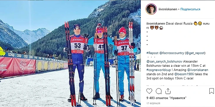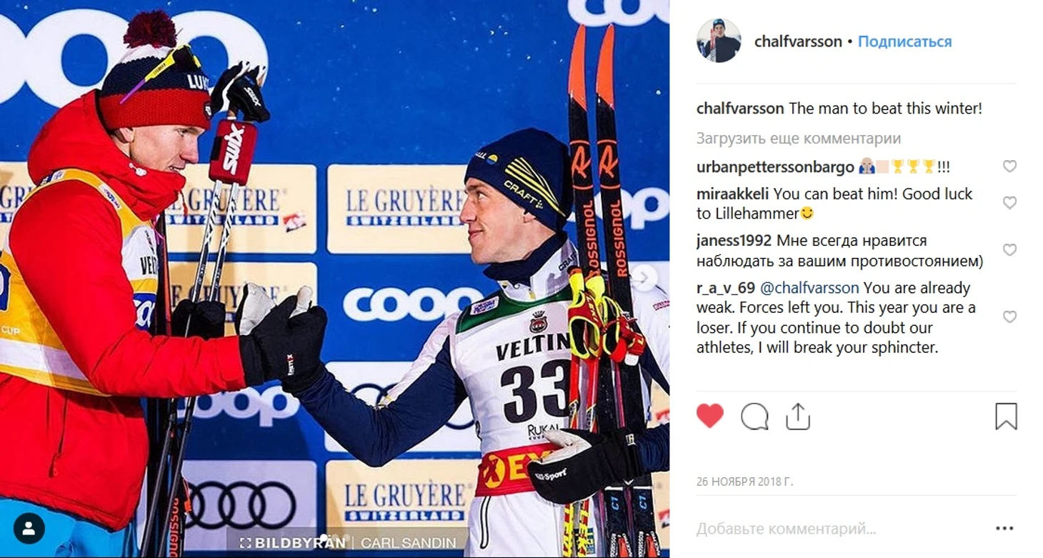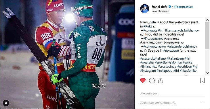 Да и спортсмены других стран вниманием Большунова (или просто Болле, как назвал его Эмиль Иверсен, а теперь и мы) явно не обделяли. Отмечали успех Большунова и швед Калле Хальфварссон, и итальянец Франческо Де Фабиани, и финн Ииво Нисканен.