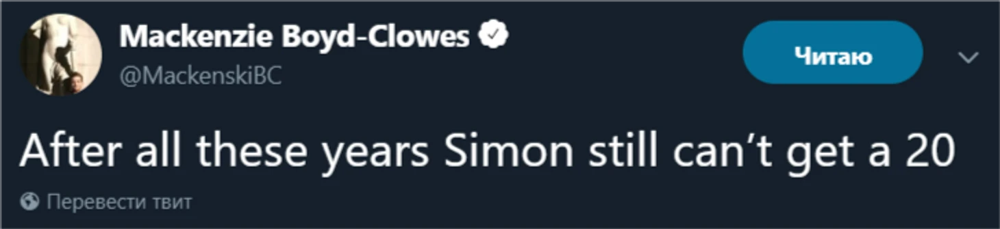 Маккензи Бойд-Клаус: «После стольких лет Симон все еще не может получить двадцатку»