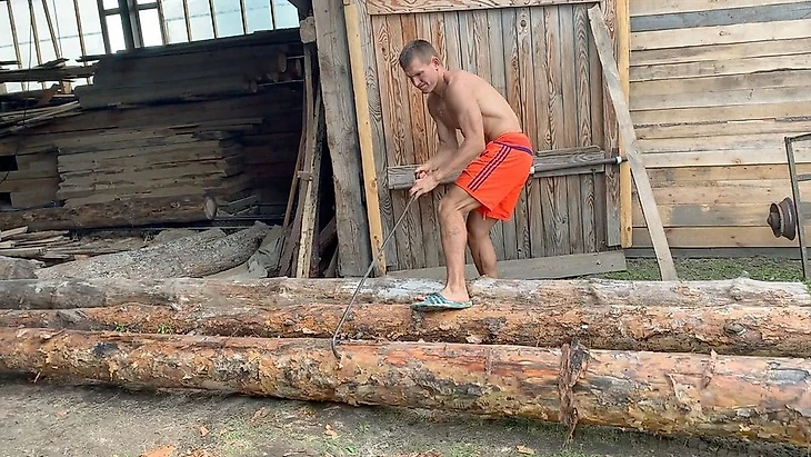 TV 2 besøkte Bolsjunov i sommer. Han kommer fra en gård som har eget sagbruk. Og vi fikk se at det fortsatt er nødvendig med muskler for å få arbeidet utført.
