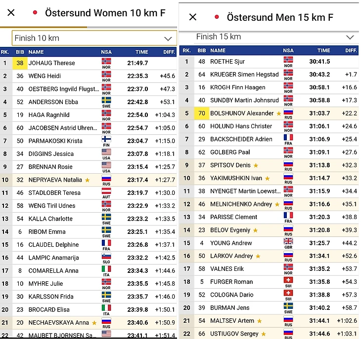 Думаю, что мало кто сомневался в победе Йохауг. Вопрос как всегда один: сколько она привезёт второму месту? На этот раз она привезла достаточно - 45.6 секунды. Боюсь предположить сколько будет после преследования. Скорее всего, минимум 1.5 минуты. Лучшей из остальных стала Хайди Венг, которая вырвала победу у Остберг. И лишь Эбба Андерссон смогла разбить стройные ряды норвежек, заняв 4 место. В общем, особых неожиданностей гонка не принесла. Наталья Непряева заняв 10 место подпустила немного Венг в тотале, завтра, я думаю, подпустит ещё немного. Трасса с большими перепадами и подъемами, что не подходит Наталье: