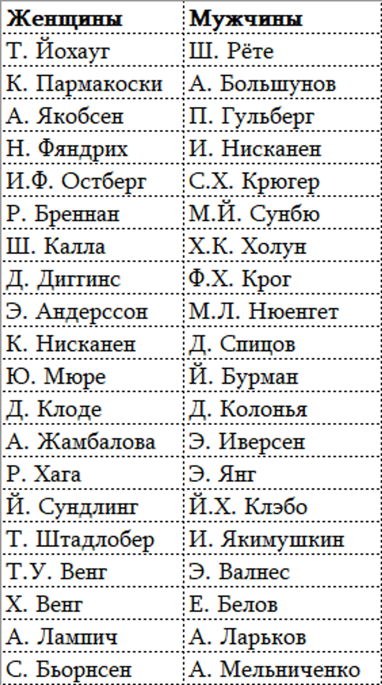 1. Т. Йохауг; 1-3. Х. Венг; 1-6. И. Ф. Остберг