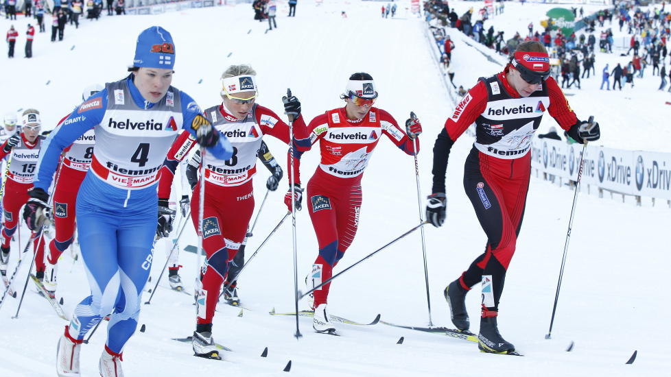 Полноценными соперницами правда можно было назвать только двоих. Марит и её легкокрылую подругу Терезу Йохауг. Шарлотта Калла, так резво разбиравшаяся с норвежками в начале сезона, видимо так и не оправилась от бронхита. Киккан Рэндалл, не смотря на все попытки, всё-таки больше спринтер. А финская прима Айно Кайса Сааринен, после довольно бурного старта, неожиданно сдулась, уступив место более молодой подруге по команде Кристе Ляхтенмяки. В общем, призовая тройка была предопределена ещё на заре Тура. Вопрос состоял только в том КАК ИМЕННО распределятся места.
