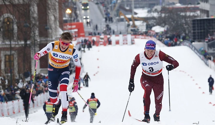 Йоханесс Клэбо (слева) - ровесник и главный соперник Большунова. Норвежец чаще побеждает в коротких гонках, россиянин – в длинных