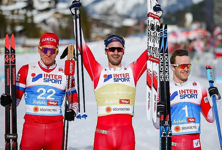 Чемпионат мира-2019, Зеефельд. Призеры марафона. Слева направо: Большунов, Холунн, Рёте