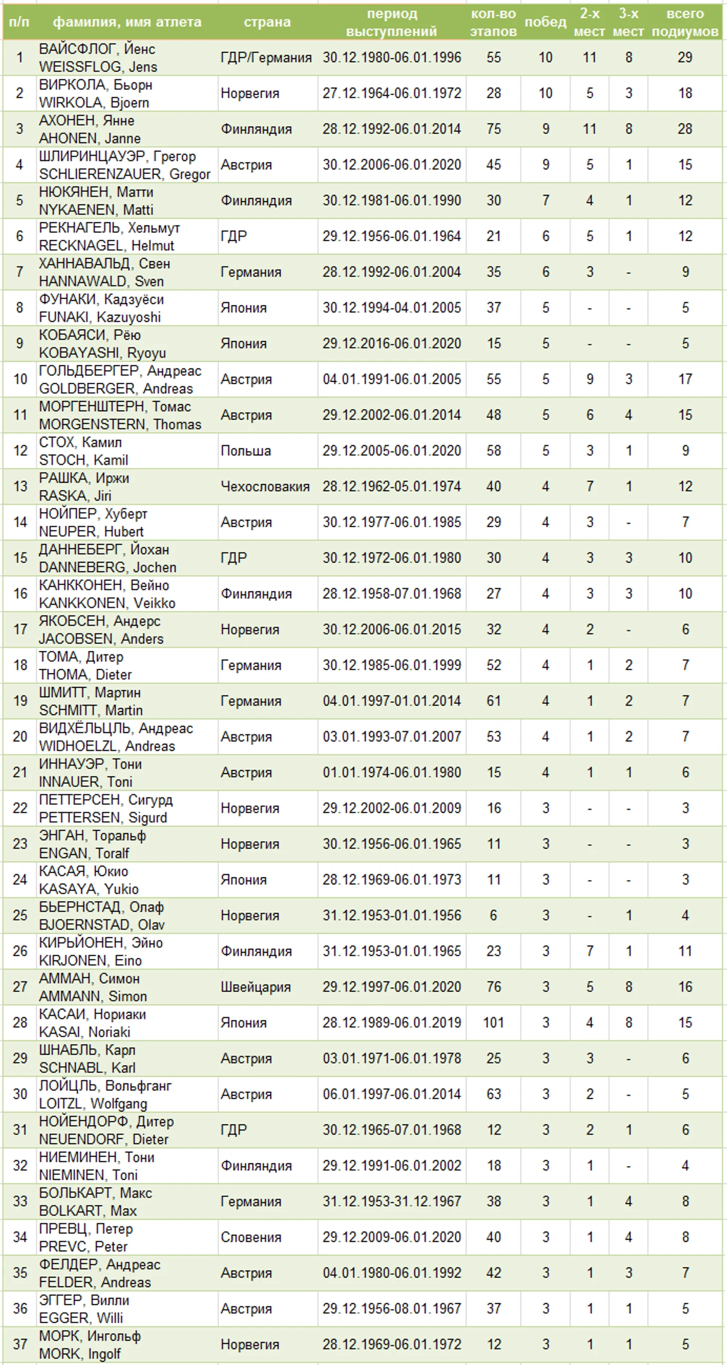 Турне 4-х трамплинов. Обзорная статистика за все сезоны