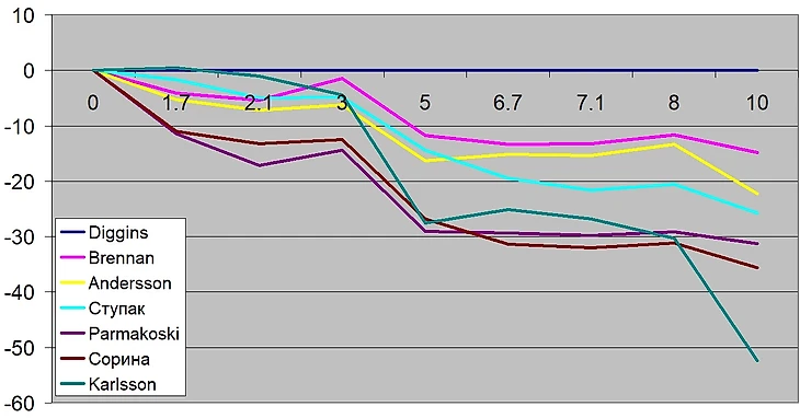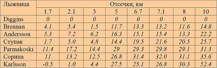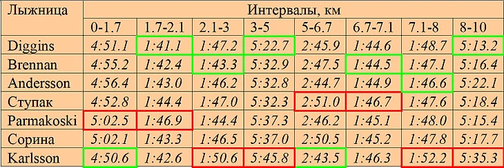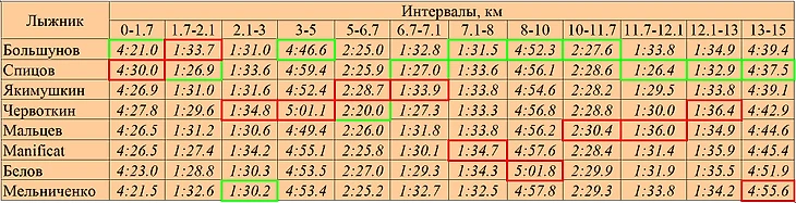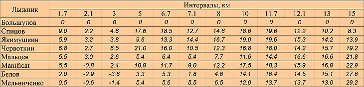 Пробежимся вкратце по всем лыжникам из таблицы: