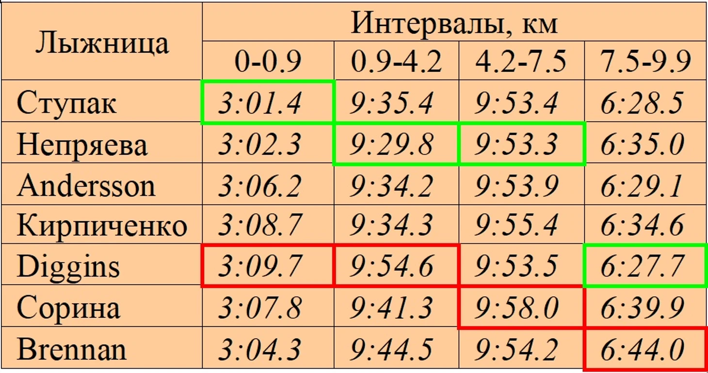 Ступак лучшая по ходу и силы распределила очень грамотно по всей дистанции, Непряева хоть и проиграла чуть-чуть, но слишком быстро бежала середину дистанции и под конец ей не хватило сил.
