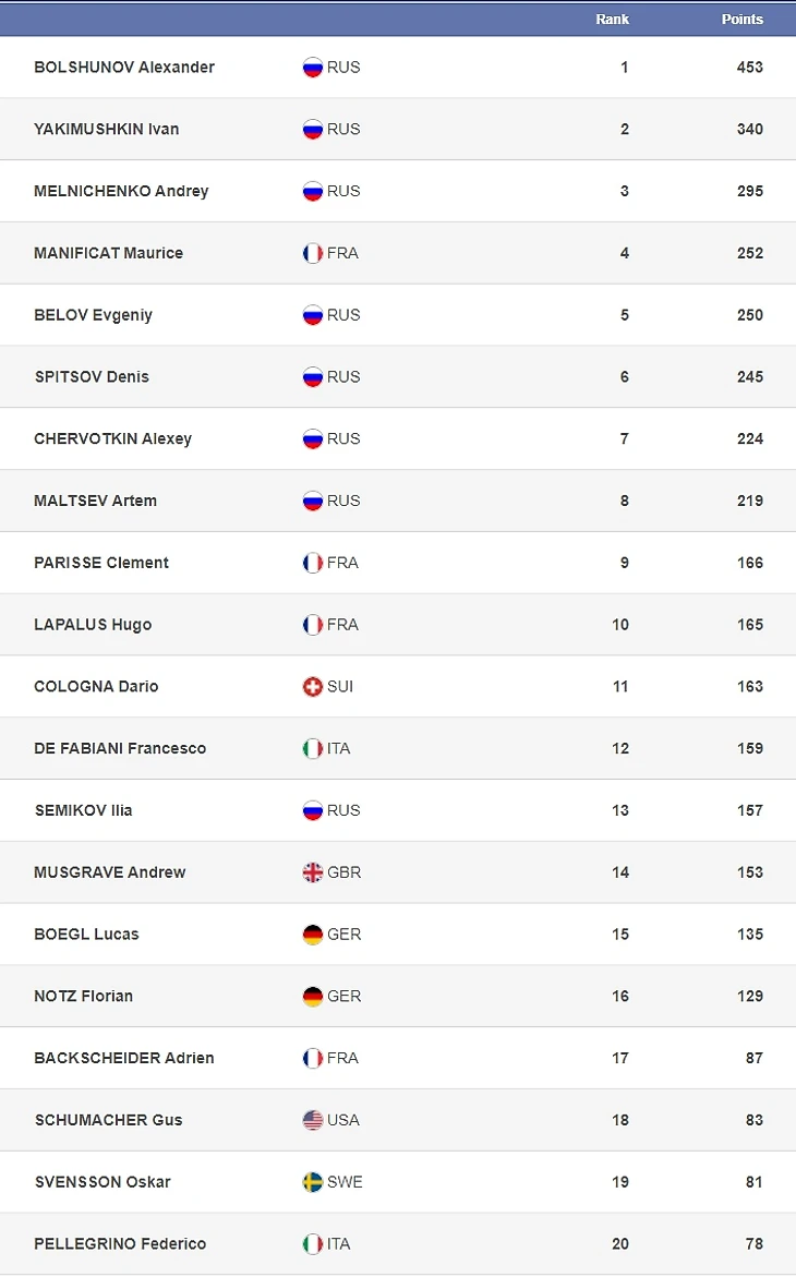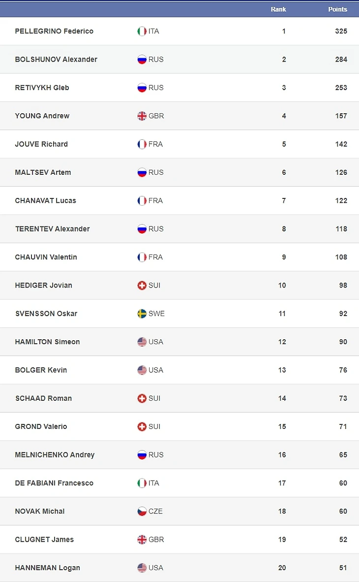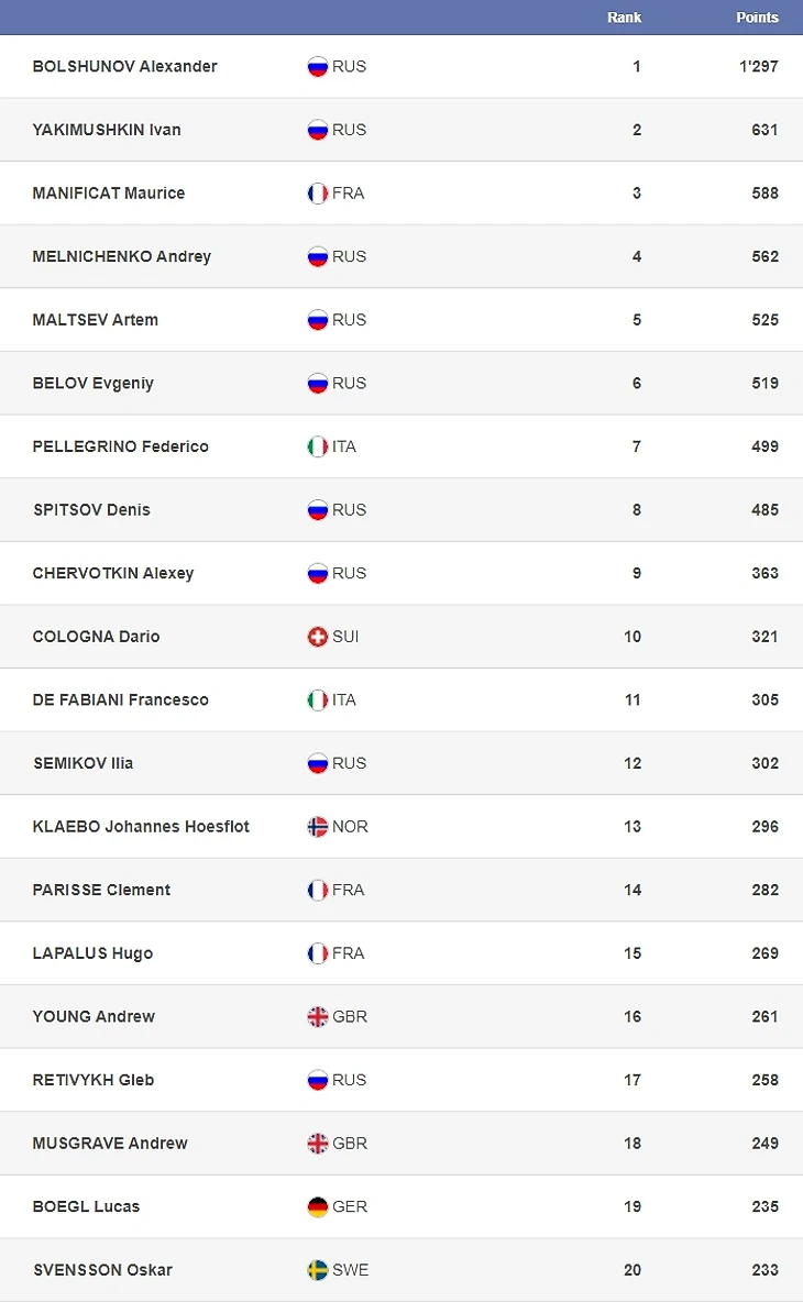 Спринтерский, дистанционный и общий зачеты у мужчин: