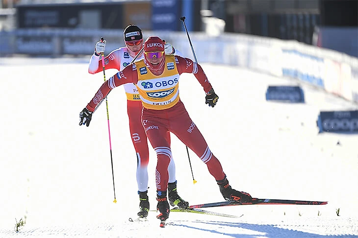 Александр Большунов выиграл первый же старт после гранд-скандала с финном в эстафете – коньковую разделку на 15 км в Фалуне (Швеция).
