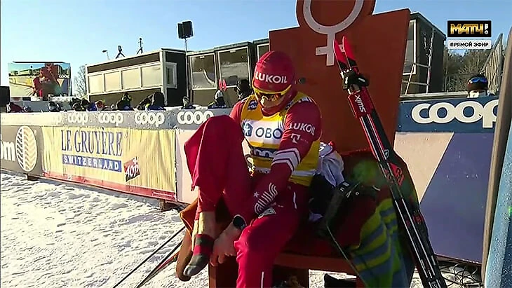 А разгоряченный Александр после финиша при минус 14 переодевал носки прямо на троне.