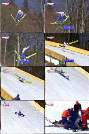 «Прыжок был хороший, но пошел встречный ветер. Ему начало задувать одну лыжу, он ее выровнял, но в это время другая попала под поток и вывернулась», – объяснял механику падения тренер сборной Александр Арефьев.