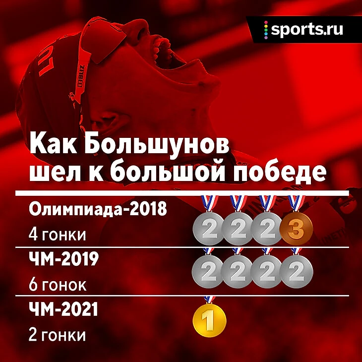 Но в то же время звучит и так по-новому и незнакомо: золота заждались, прежде всего он сам. Уже были связки медалей с Олимпиады-2018, где на Большунова не смотрели как на фаворита, а он удивлял; и с ЧМ-2019, где он уже шел за титулом, но остался без золота.